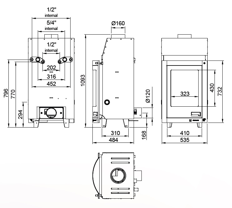 Rookgasafvoer diameter: 160mm
